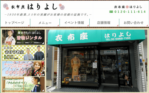 はりよしは1930年創業の着物レンタルやクリーニング、着物買取、男着物・着付け教室などを行う着物店で、京橋駅南出口から徒歩7分の場所に店舗を構えています。